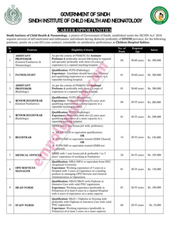 Government of Sindh Institute of Child Health and Neonatology jobs