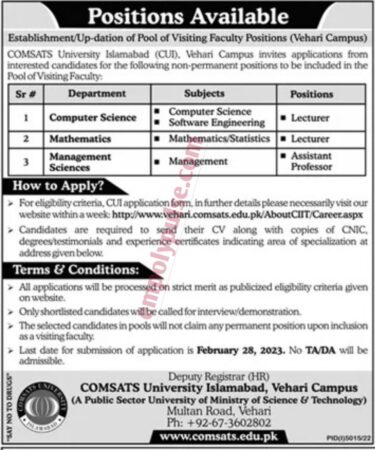 | COMSATS University Vehari Campus: Faculty Required | ||