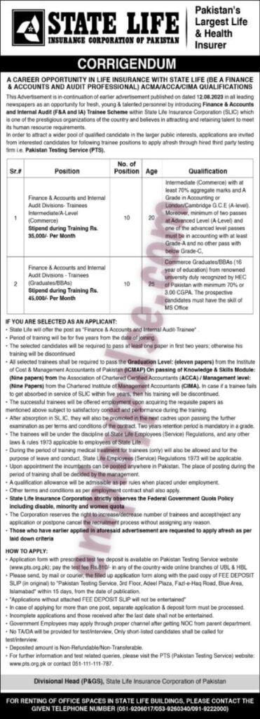 This is a great opportunity for fresh, young, and talented graduates to be part of a state life organization. Under Pakistan Testing Service Pts, candidates will be selected. Individuals are required in the finance, accounting, and internal audit divisions. Throughout the trainee program, state life insurance is responsible for providing stipends to selected candidates. This is the overall 5-year trainee program. Intrigued candidates should apply before or on the last date. Candidates for the trainee program who are chosen must pass the exam.